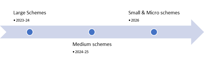 There are three planned phases to implement the requirements. Firstly, the large schemes are scheduled for between April 2023 and September 2024, before moving onto phase two for medium schemes between October 2024 and October 2025. The small and micro schemes are set for a 2026 deadline.